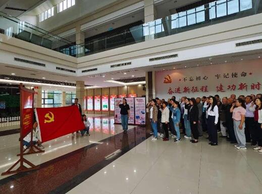 黨員們在鮮紅的黨旗下重溫入黨誓詞