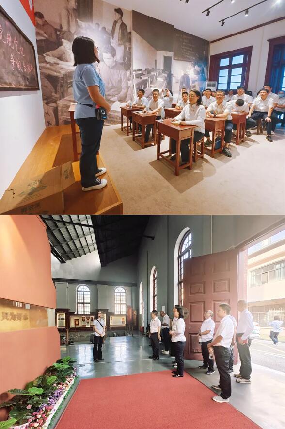 在既濟(jì)水電公司宗關(guān)水廠舊址及產(chǎn)業(yè)工人展展廳,宗關(guān)水廠工作人員生動(dòng)講述著那段波瀾壯闊的歷史。1922年,武漢水電業(yè)第一個(gè)工會組織在這里誕生,猶如一顆希望的種子,播撒下工人團(tuán)結(jié)奮斗的信念;1925年,武漢水電業(yè)第一名共產(chǎn)黨員在此發(fā)展,如同一盞明燈,照亮了前行的道路;1926年,武漢水電業(yè)第一個(gè)黨組織在這里成立,恰似一座堅(jiān)實(shí)的堡壘,引領(lǐng)著工人運(yùn)動(dòng)蓬勃發(fā)展。黨員們凝視著既濟(jì)水電公司股票展品,端詳著百年武水壁畫、公事房、老泵房、水塔建設(shè)等歷史照片,仿佛穿越時(shí)空,親身感受著武漢供水事業(yè)的百年滄桑與輝煌成就。在這里,每一個(gè)物件都承載著歷史的記憶,每一幅畫面都訴說著先輩們的奮斗故事,讓黨員們深刻感悟到中國共產(chǎn)黨領(lǐng)導(dǎo)工人運(yùn)動(dòng)和推動(dòng)自來水事業(yè)砥礪前行的紅色印記。
