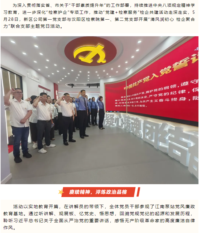 清風潤初心 檢企聚合力--漢陽區(qū)檢察院、新區(qū)公司聯(lián)合支部主題黨日活動